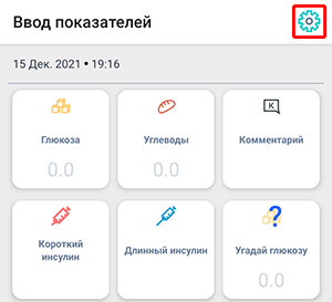 Нажмите символ шестеренки в правом верхнем углу экрана ввода показателей.