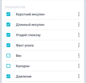 Количество инсулинов и других препаратов не ограничено – Вы можете добавлять столько новых показателей, сколько необходимо.