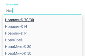 Если Вы выбрали «Инсулин» - начните вводить его название.