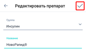 В приложении есть предустановленный справочник инсулинов. Возможно, Вы найдете свой инсулин в списке.