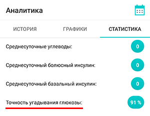 В разделе «Статистика» доступен статистический показатель «Точность угадывания глюкозы»