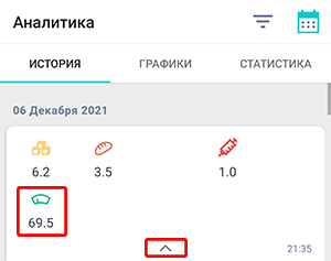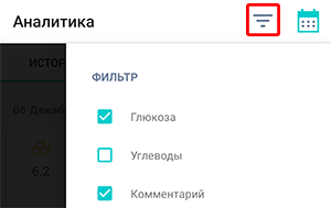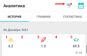 В истории записей можно включить фильтр, чтобы найти нужные показатели.