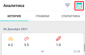Для поиска показателей за определенную дату нажмите на символ календаря справа вверху.