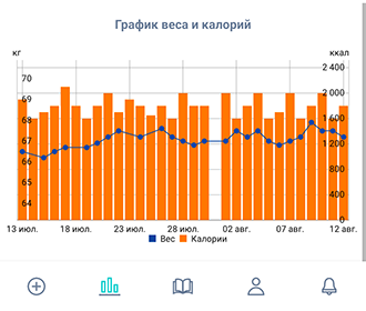 График веса и потребленных калорий отображается отдельно – под первым графиком.